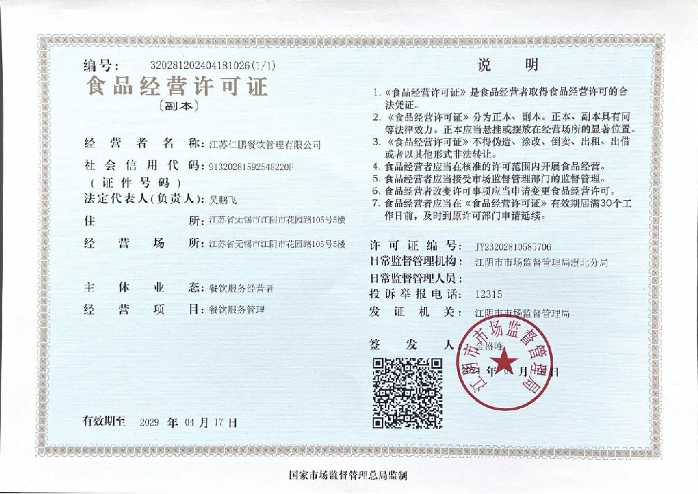 江蘇仁鵬餐飲管理有限公司