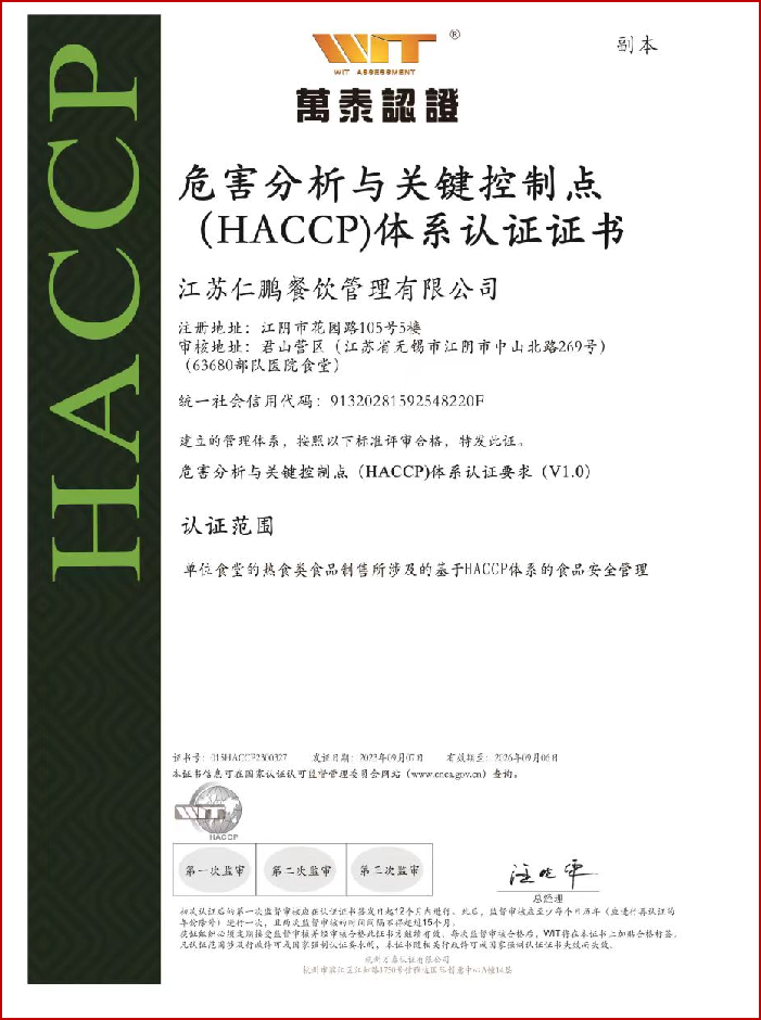 危害分析與關鍵控制點(HACCP)體系認證證書
